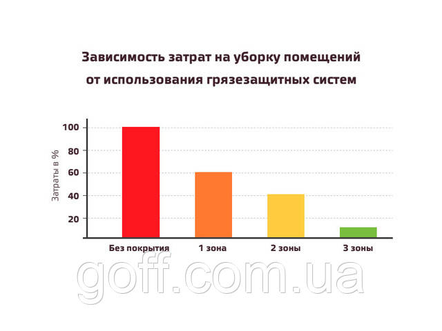 Бруд, пісок та інше сміття відфільтровані, потрапляють під кольорову поверхню й відфільтровані до гумової основи, що запобігає у такий спосіб зникнення кольору та забезпечує гарний стан і чистоту брудозахисного підлогового килимка.